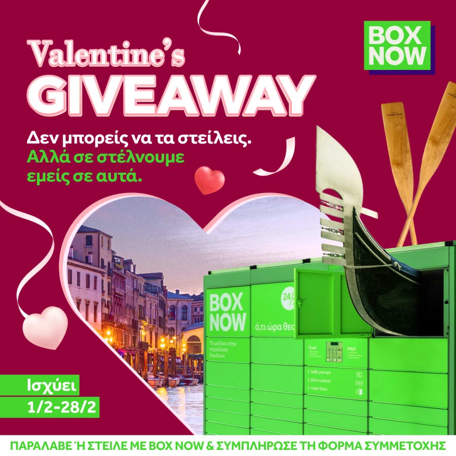 Κέρδισε ένα ρομαντικό ταξίδι στη Βενετία για δύο!💗 Επίλεξε την υπηρεσία BOX NOW για παραλαβή από τα αγαπημένα σου συνεργαζόμενα e-shops ή στείλε δέμα και μπες στην κλήρωση! Συμπλήρωσε την παρακάτω φόρμα και μπορεί να είσαι εσύ ο μεγάλος νικητής που θα κερδίσει αεροπορικά εισιτήρια για δύο άτομα!